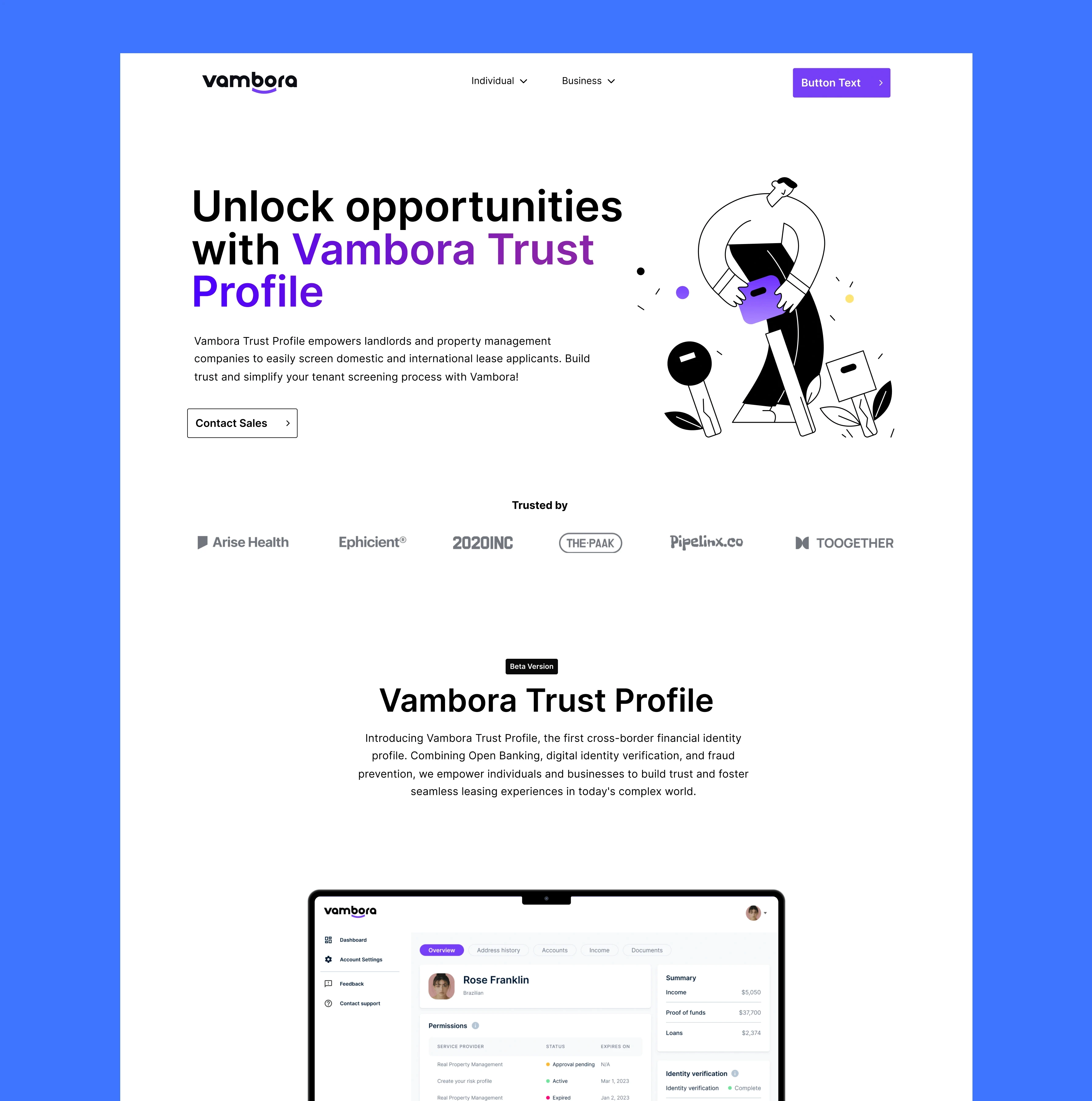 Vambora helps newcomers to Canada carry their credit history with them. By connecting open source banking APIs from different countries, the platform gives people a fresh start without leaving their financial story behind. I designed and launched the website to make things simple, welcoming, and easy to use.